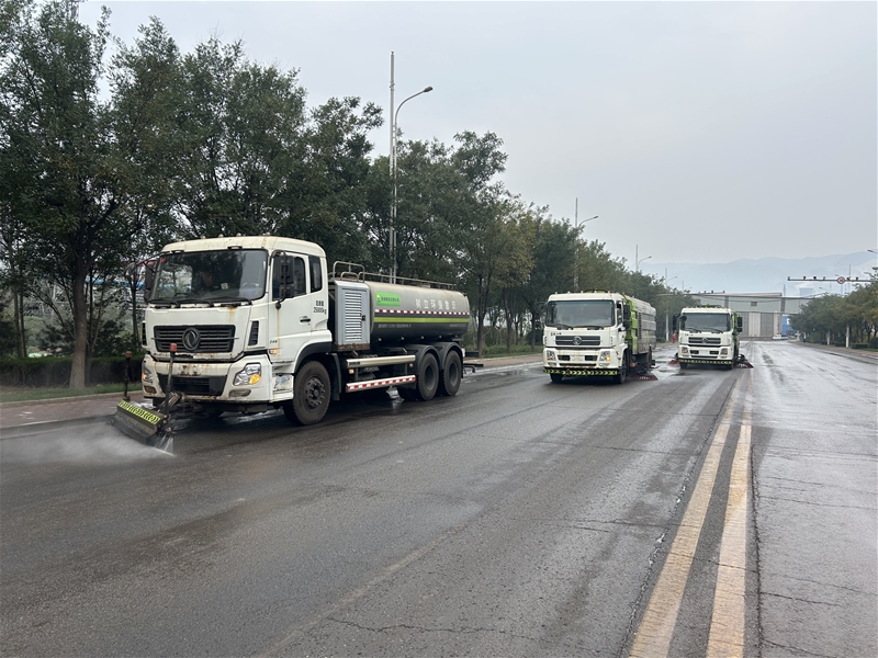 冬季天干物燥、风力偏强,正是环境治理的关键期。该单位严格遵循“错峰作业、全面覆盖”的原则,组织清洁车辆按照预定路线,对厂区44万平方米道路、28条主干道开展地毯式清扫。作业现场,吸尘车、洗扫车以“干式清尘、湿法抑尘”精细化协同模式,清除路面深层积尘、车辆散落物及轮胎印记,从源头抑尘;高压清洗车伸出灵活“长臂”,用高压水枪冲洗路面附着物、公交站台、交通标识牌等道路设施,不留清洁盲区,还原设施本色;洒水车科学调控洒水频次,既保持路面湿润无尘,又规避低温道路结冰风险。这套“清扫+清洗+抑尘”的机械化作业组合拳,构建起“全方位、无死角、高效率”的清扫体系,让钢城冬日道路洁净清爽,为生态环境筑牢防护屏障。