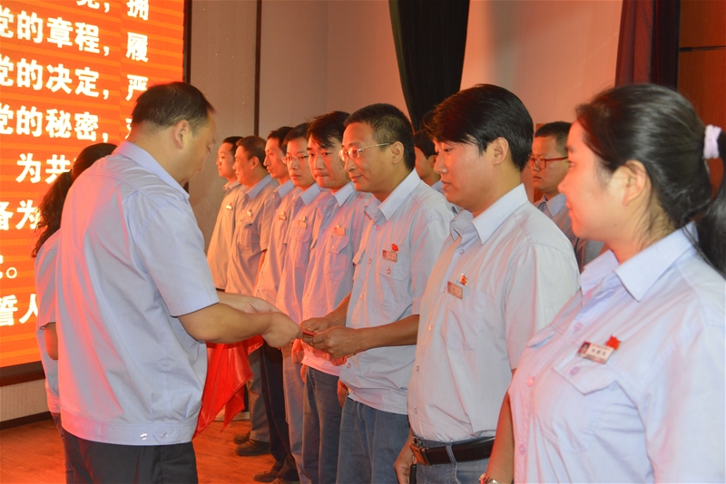 表彰了炼钢厂党总支等16个先进基层党组织,田学智等8名优秀党务工作者以及户百武等15名优秀共产党员。先进党组织代表机关党总支和优秀共产党员代表侯增栋分别做了交流发言。杜东兴为18名新党员发放了党章,全体与会人员重温了入党入党誓词。