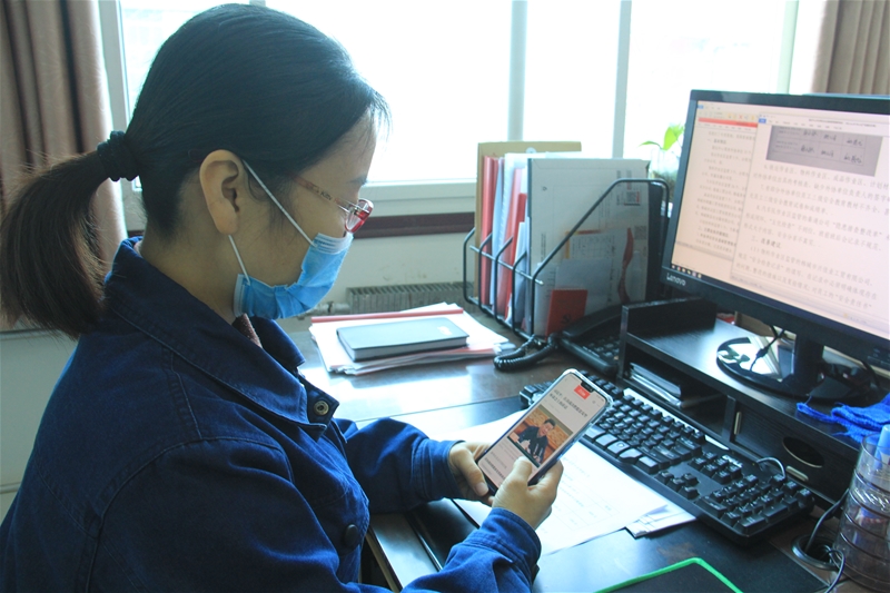 “‘学习强国’这个平台很了不起,内容啥都有,还可以传授写作技巧,我就是靠这个给‘充电’,让自己随时保持‘满电’状态。”储运中心通讯员郭金环如是说。