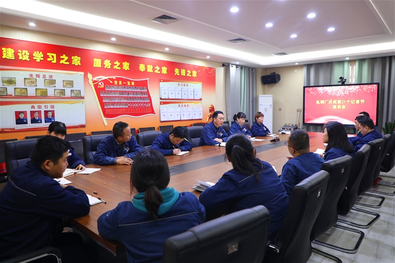 图一:组织召开记者节座谈会,摆问题,谈想法,提措施,大家畅所欲言,坚定信念、充满激情,纷纷表示执笔为媒,继续传播钢城好声音,为企业高质量发展提供有力思想支撑。