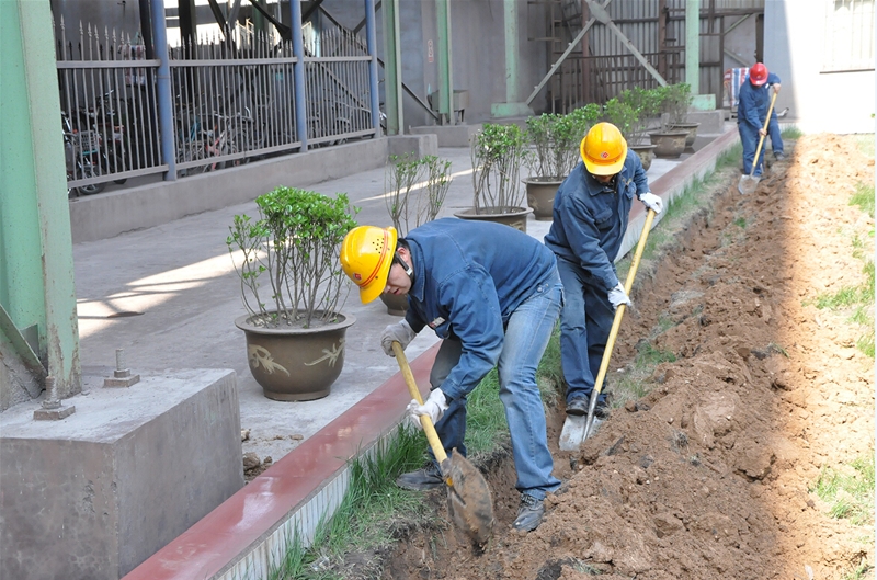 活动现场,大家早早来到指定绿化区域,拿好提前准备好的铁锹、水桶等工具。春风虽寒,但大家植树的热情不减,分工明确、配合默契,有的挖坑、有的松土、有的担水、有的检查苗木是否存活,个个忙的不亦乐乎。经过半天的辛勤劳动,共挖树坑30个、捡拾绿化带100米、移植苗圃植株26棵。