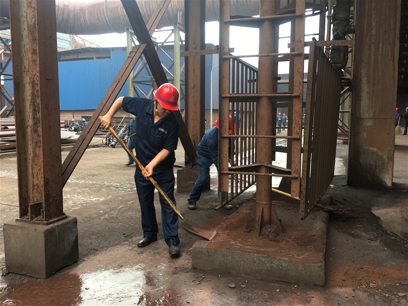 基层各班组重点对值班室、备件库、三材点、垃圾点卫生死角进行清扫治理;覆盖所有现场物料、料场、裸露场地;开展固体废品、电池回收;对废油桶棉纱设定区域定置摆放,对废旧油污进行清理;对各路口、料仓口、洗车装置重点管理;按计划加快推进环境治理工作,确保环境治理不留死角。为建设生态园林钢城,推进新时代生态文明建设,实现经济高质量发展做出应有贡献。