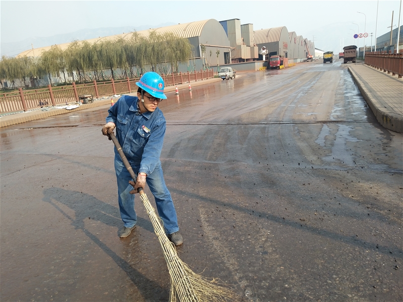 十一班驾驶员樊国胜自觉清扫14#料场出口夹带物料