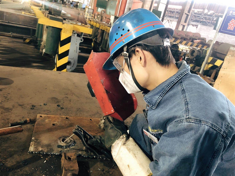 这是在该单位连铸4#连铸机平台下的一段对话。自4#连铸机改造为生产板坯后,因引锭头呈不规则形状,吊装无固定吊点,仅靠钢丝绳捆扎,存在安全隐患。针对此项问题,维修人员结合实际情况,在引锭头两侧安装吊装销耳。这一设计不仅方便吊装、安装作业,也解决钢丝绳捆扎不牢靠问题,降低了人员操作难度。
