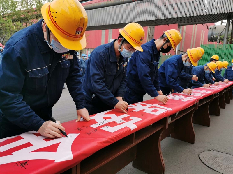 仪式上,炼钢厂领导就“四不伤害月”相关工作进行了安排部署;全体人员共同进行安全宣誓,并在“查隐患 纠违章 添措施 保安全”横幅上签下安全承诺。