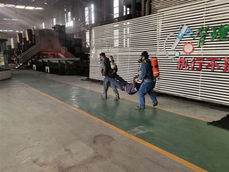 8月9日下午14:15分,轧钢厂棒三作业区展开了一场“全真模拟”煤气中毒应急演练。此次演练严格按照煤气应急预案程序,现场模拟2名岗位工在作业过程中突遇煤气泄漏,1名人员产生中毒昏迷症状,1名人员当即报告领导,并立即进行紧急处理的过程,通过演练进一步提升了一线岗位工安全意识和应对突发事件的能力。