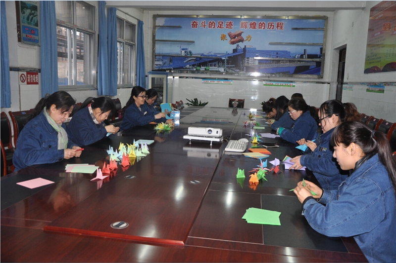 1月3日,当韩城市慈善协会发出号召爱心志愿者为本市白血病患者刘晓庆义捐义卖现场折叠纸鹤的消息后,炼铁厂工会主动与协会联系,第一时间组织女职工利用班后时间,齐聚会议室相互探讨、研究现场学习纸鹤叠法,随后将折纸分工自带回家折叠,历经五日共同折叠爱心千纸鹤1000余只,备战义捐义卖现场发放,激发全民爱心,帮助患者早日战胜病魔。