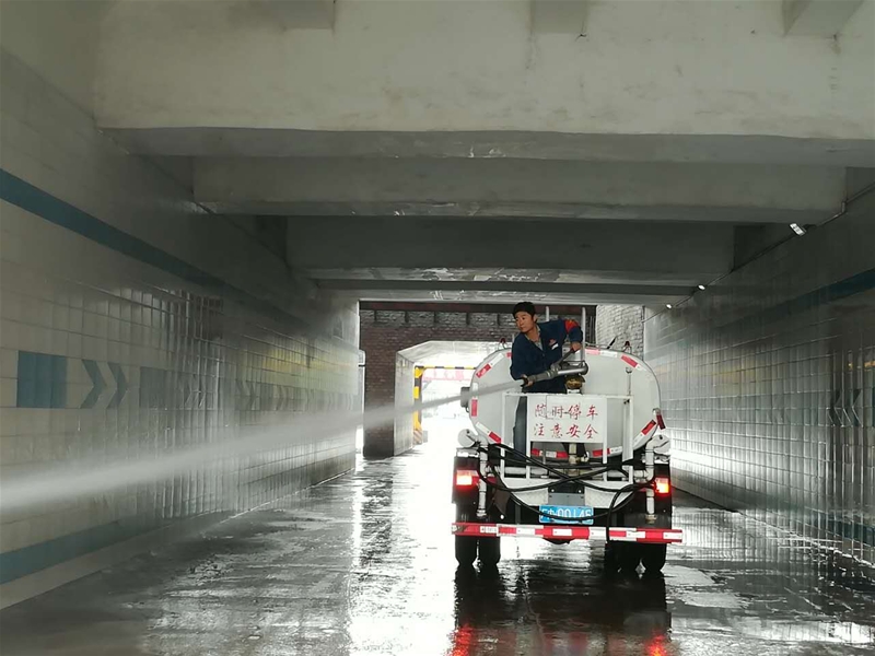 到达现场后,志愿者们迅速进行了分工:你个头高,你就拿着拖布刷墙壁顶部;他个头小,他就拿着抹布擦墙壁底部;你拿着水冲,他拿着盆洗……随着洒水车的到来,大家热情高涨,迅速投入到清洁工作中。