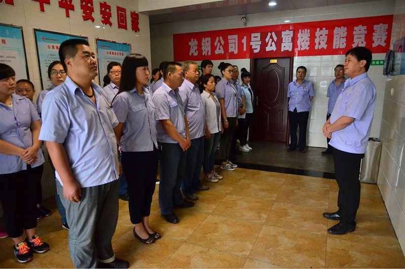 本网讯(通讯员 姚庆娟)7月14日,公司首届公寓楼技能竞赛在公司1#公寓楼拉开序幕。公司工会主席赵春棠、公寓楼楼层管理员以及工会办公室相关人员参加了开幕式。
