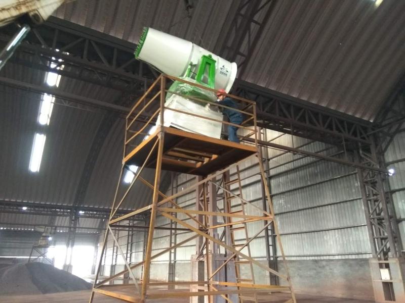 凝聚人心装雾炮 为降低新建大棚内扬尘污染,改善作业环境,储运中心计划在14#料场球团跨再安装2台雾炮机、14#新建大棚安装4台雾炮机、11#转运干熄焦区域、7#新建大棚各安装1台雾炮机。各级领导亲力亲为,细致谋划,下现场指导工作,现场人员拉电缆、吊架子、安底座、调喷射方向等壮观的场面令人动容,所有人员齐心协力,确保安装平稳顺行。截止目前公司7#、14#料场雾炮机已成功安装到位,11#料场雾炮机按照时间节点持续推进。