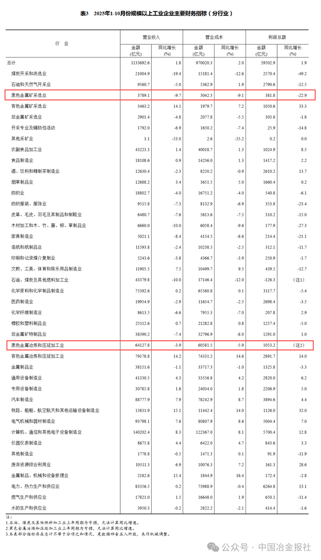 1-10月份,主要行业利润情况如下:有色金属冶炼和压延加工业利润同比增长14.0%,电力、热力生产和供应业增长13.1%,计算机、通信和其他电子设备制造业增长12.8%,农副食品加工业增长8.5%,电气机械和器材制造业增长7.0%,通用设备制造业增长6.2%,专用设备制造业增长5.0%,汽车制造业增长4.4%,非金属矿物制品业增长1.0%,黑色金属冶炼和压延加工业同比由亏转盈,利润总额为1053.2亿元,石油、煤炭及其他燃料加工业同比减亏,化学原料和化学制品制造业下降5.4%,纺织业下降6.1%,石油和天然气开采业下降12.5%,煤炭开采和洗选业下降49.2%。