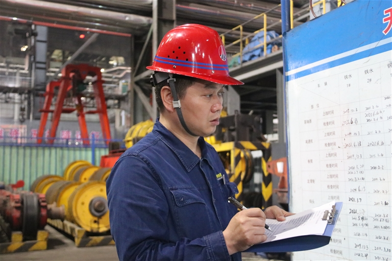在天车作业区有这样一个80后,他身着工作服,头戴安全帽,一丝不苟地检查着每一根钢丝绳,他就是天车作业区维修安全员——王龙喆。